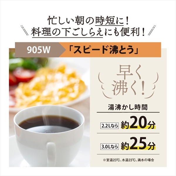 ●湯沸かし時間、消費電力量、蒸気を抑える「沸とうセーブ」