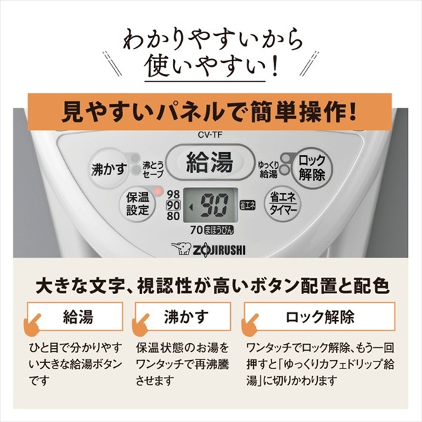 https://www.zojirushi.co.jp/syohin/pot_kettle/ve_electric_thermos/cv-tf/