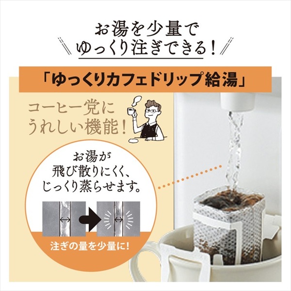 ●ゆっくり少量ずつ注げる「ゆっくりカフェドリップ給湯」