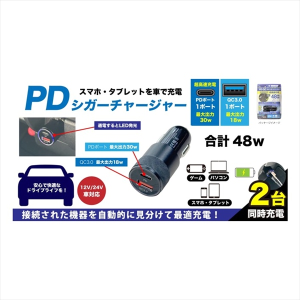 【新景品】PD+QC2ポートシガーチャージャー