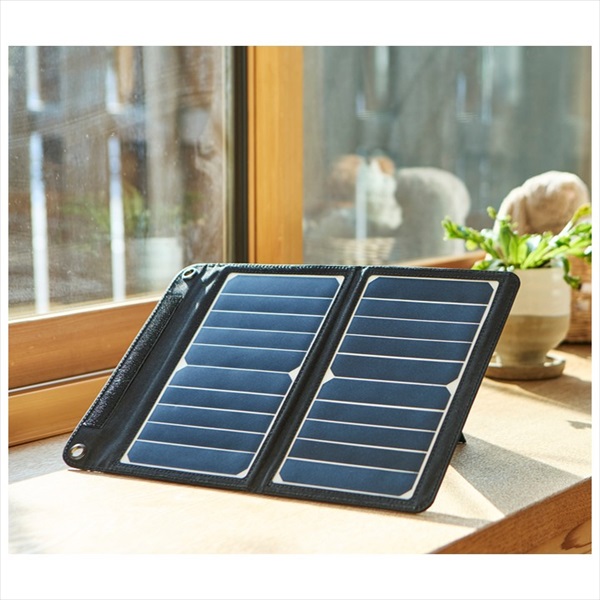 太陽光で発電、気軽に節電、コンパクトな折りたたみ式充電器