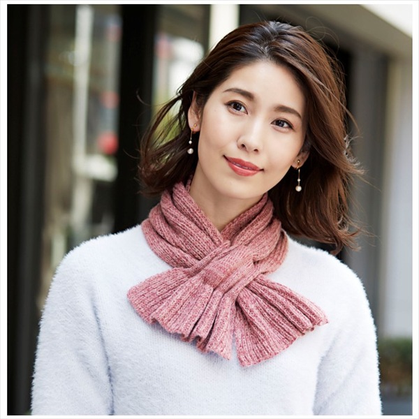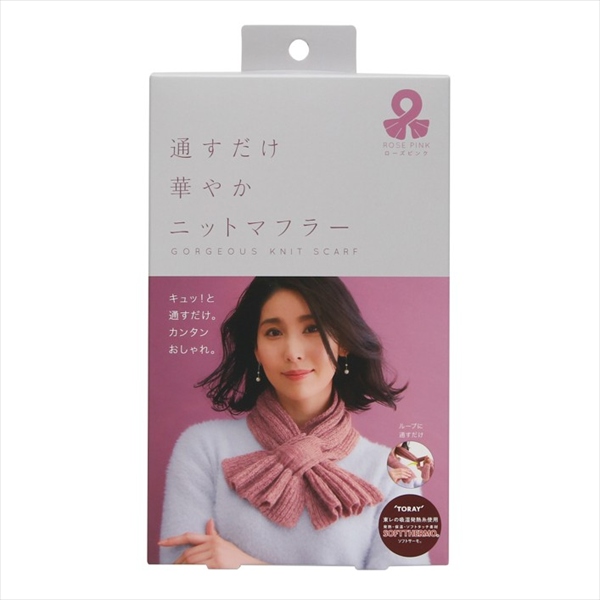【新景品】コジット 通すだけ華やかニットマフラー ローズピンク