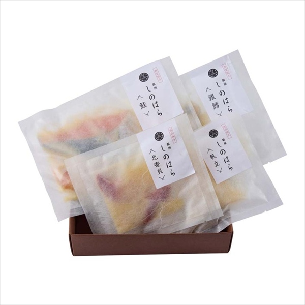 ●内容量:鮭・銀鱈×各2切入、北寄貝(2個入)、帆立(4個入)