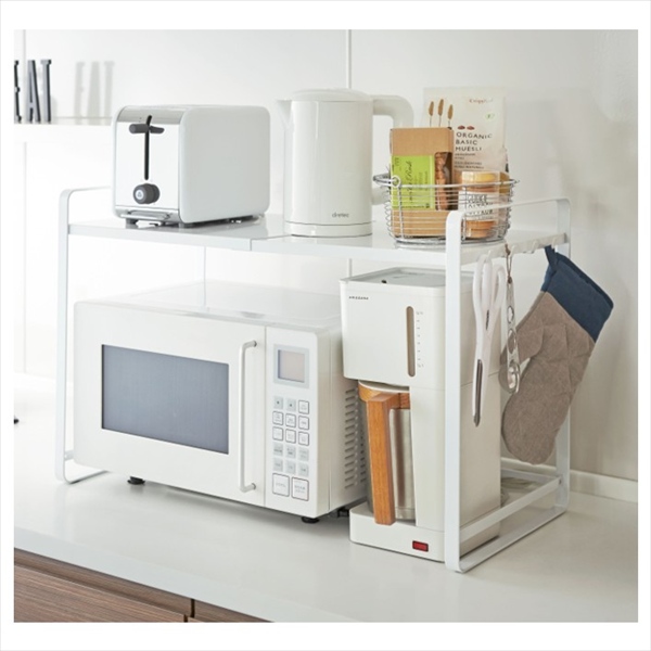 シンプルで使いやすい約47.5~75cmまで伸縮可能な電子レンジ収納ラック