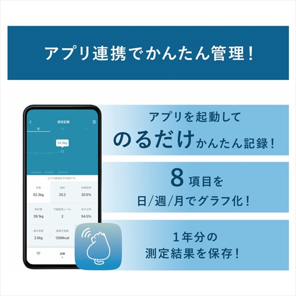 専用アプリ連携で11項目のデータを自動で記録