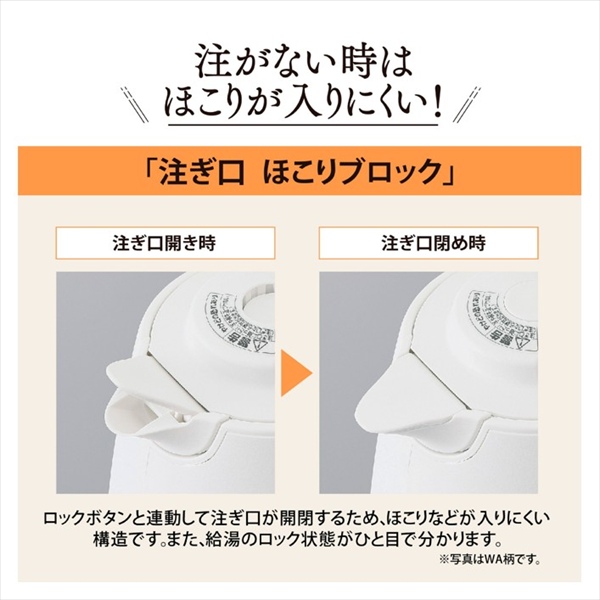 ※1ロック状態になっていても、本体を傾けたり倒したりすると、注ぎ口などからお湯が流れ出る恐れがあります。