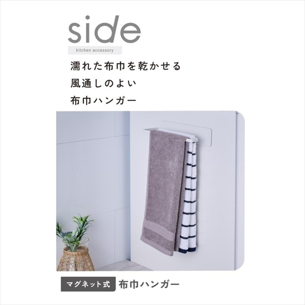 エレコム “side”キッチンアクセサリー マグネット式布巾ハンガー ホワイト