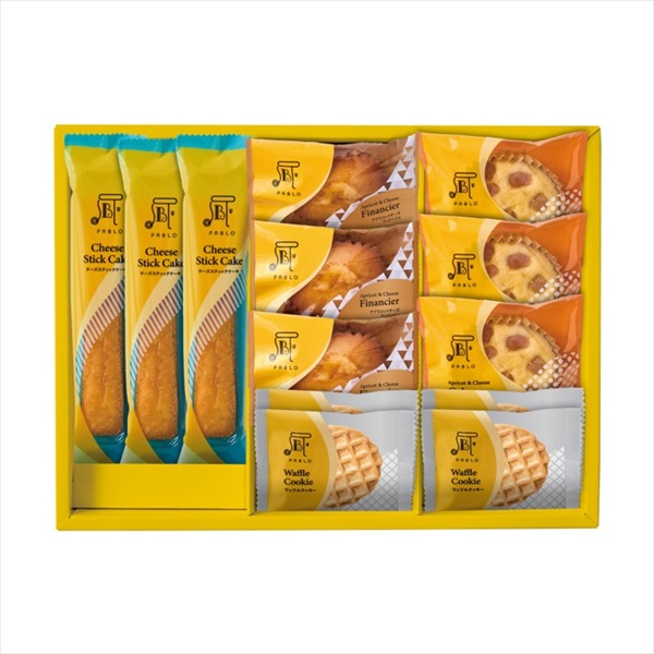 ●内容量:アプリコットチーズフィナンシェ×3、アプリコットチーズケーキ×3、チーズスティックケーキ×3、ワッフルクッキー×4