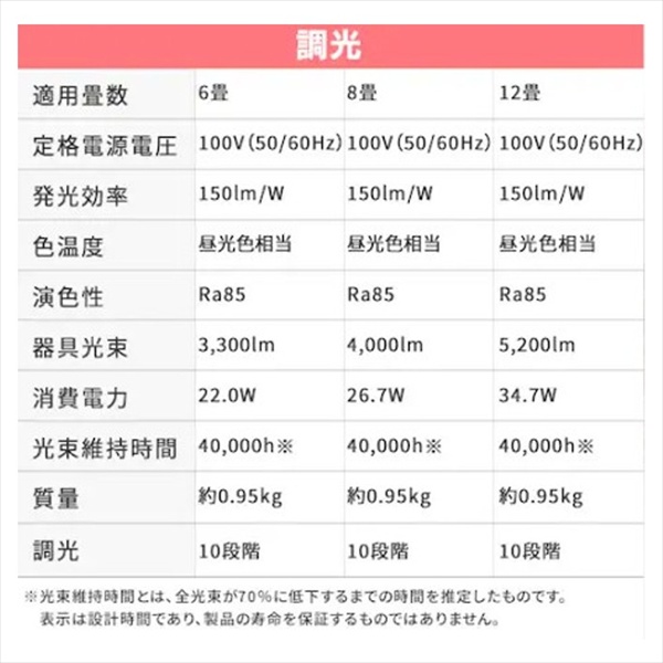 ●調光/常夜灯:10/2段階