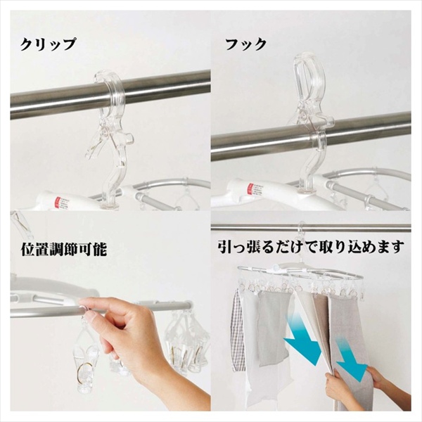 引っ張って楽に取り込めるアルミハンガー