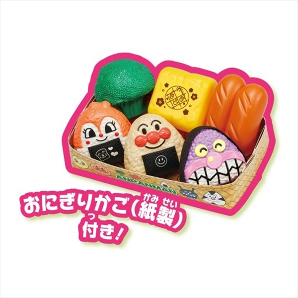 ●セット内容:アンパンマンおにぎり、ドキンちゃんおにぎり、ばいきんまんおにぎり、たまごやき、ブロッコリーソーセージ、おにぎりかご(紙製)