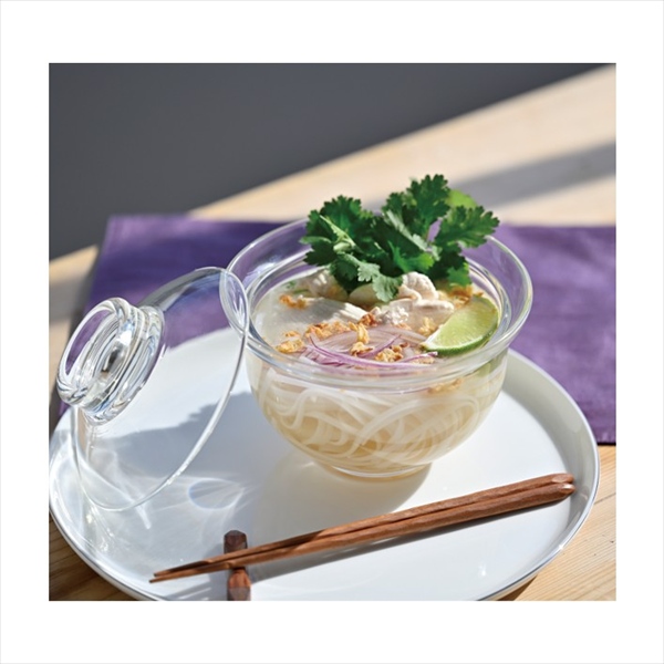 電子レンジで使用できる耐熱ガラス製のフタ付き丼