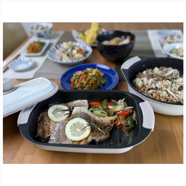 電子レンジで焼く・煮る・蒸す・温めるなど次世代の調理器具。IHにも対応