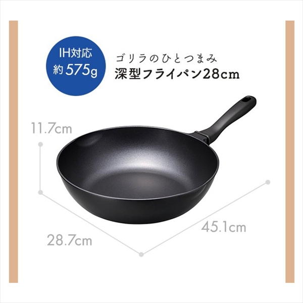 【新景品】ゴリラのIH深型フライパン28cm ブラック