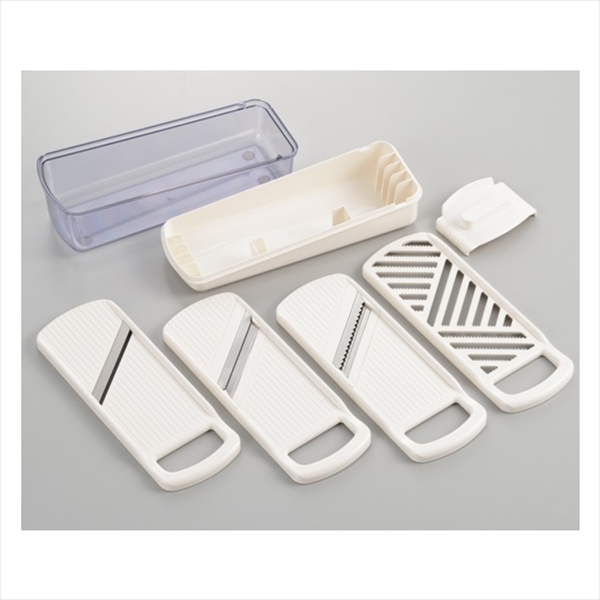 千切り、つま切り、スライサー、おろし金の4つの機能がセットに