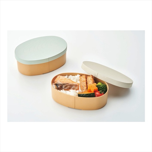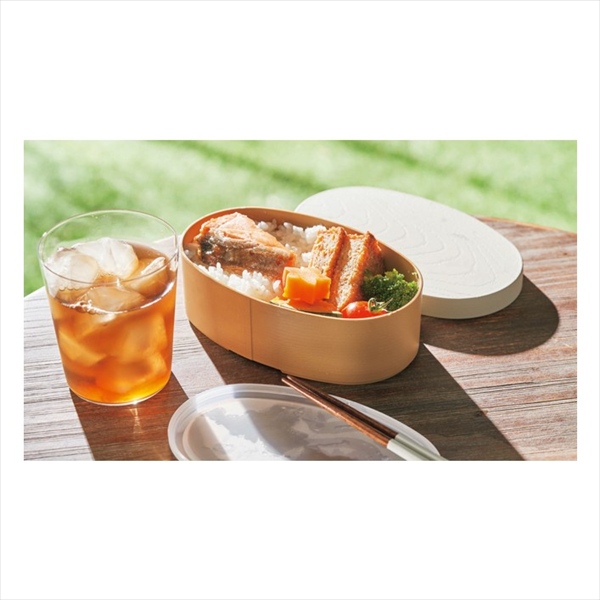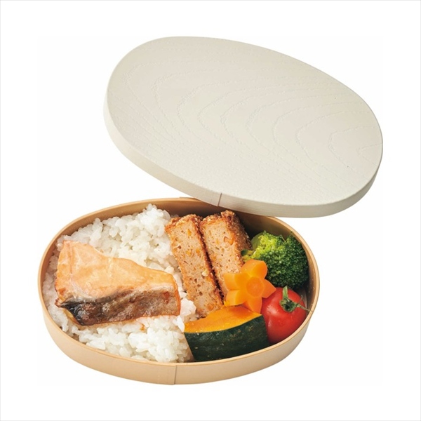 【新景品】彩色健日 曲げわっぱ風お弁当箱 小判型 白練