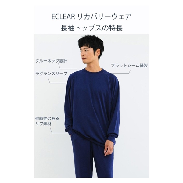 【新景品】ELECOM ECLEAR リカバリーウェア 長袖ロングパンツ セット L ネイビー