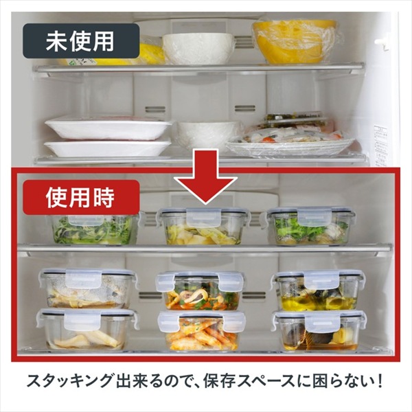 4点ロックでしっかり密閉保存が出来る3個セットのガラス保存容器