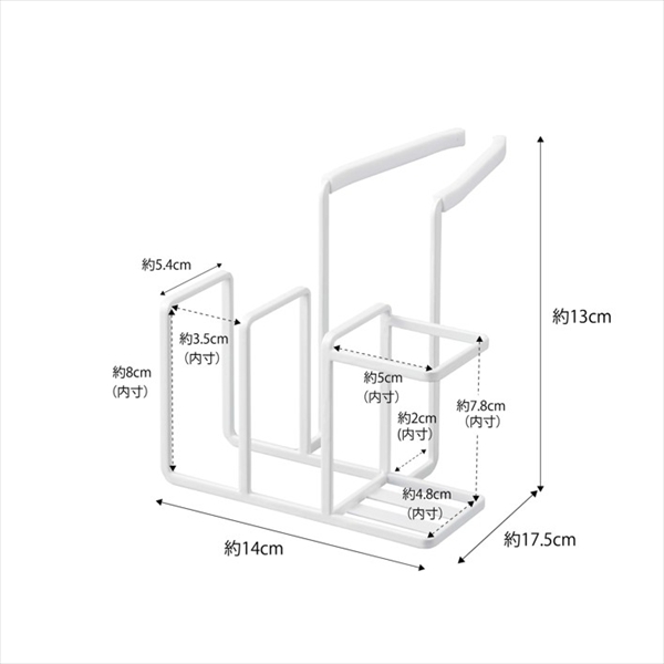 ●内寸サイズ:スポンジ収納部(1つあたり):約3.5×5.4×8cm、ボトルブラシ収納部:約5×4.8×7.8cm