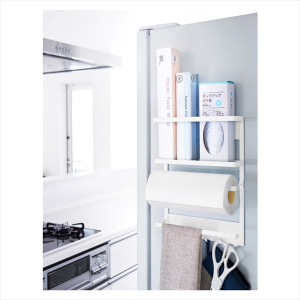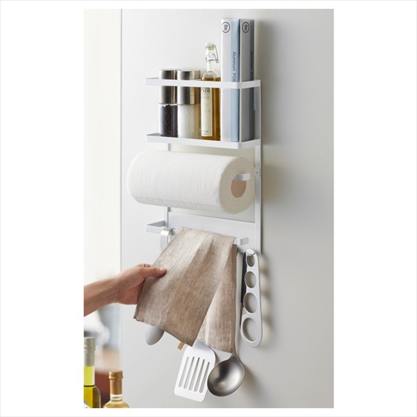 冷蔵庫側面に磁石で簡単取り付け。よく使うキッチン小物を一括収納