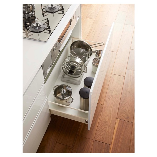 伸縮できるからシンク下のスペースに合わせてピッタリフィット!