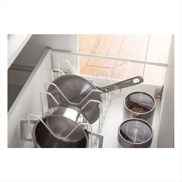 【新景品】プレート シンク下伸縮鍋蓋&フライパンスタンド ホワイト