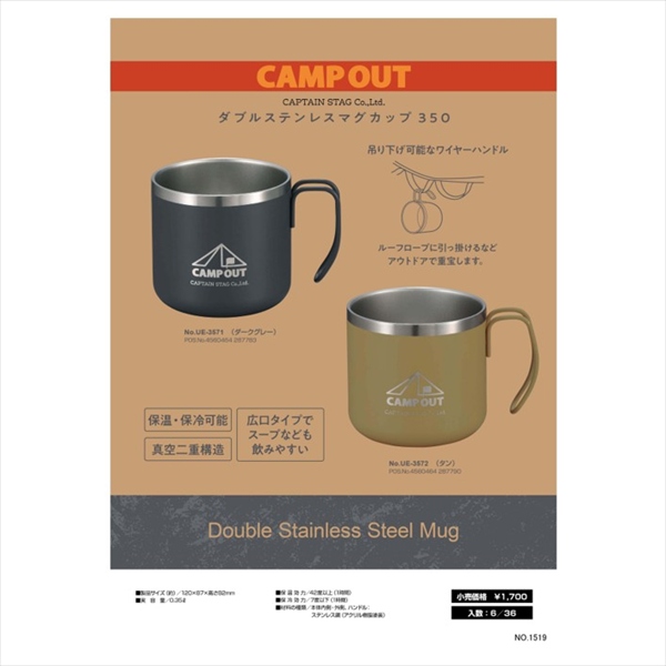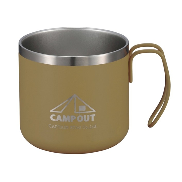 【新景品】キャプテンスタッグ キャンプアウト ダブルステンレスマグカップ350 タン