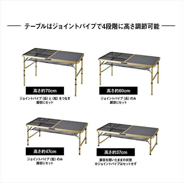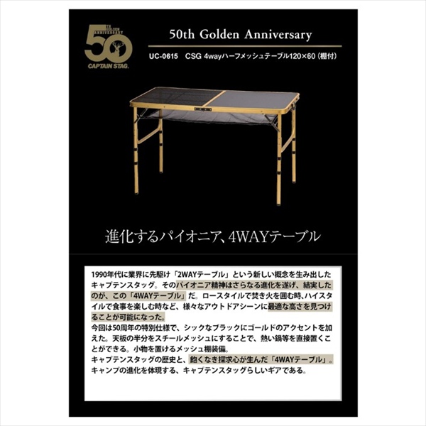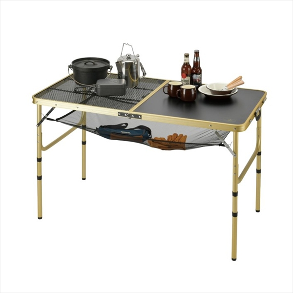 【新景品】キャプテンスタッグ CSG 4wayハーフメッシュテーブル120×60棚付