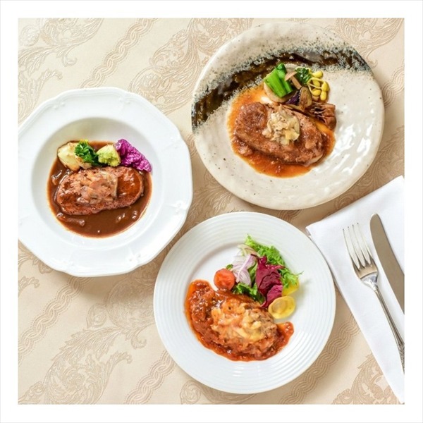 米沢牛と国産豚を使用した、お肉の旨みをお楽しみいただけるハンバーグです